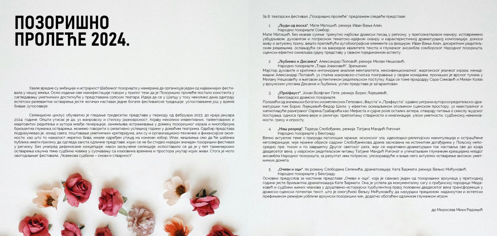 Стручни жири 8. Фестивала "Позоришно пролеће" у саставу: Божидар Ђуровић, редитељ, Миа Кнежевић, редитељка и Роберт Ристов, глумац, после пет одгледаних представа у званичној конкуренцији фестивала, донео је једногласно одлуку о наградама Фестивала "8. Позоришно пролеће":