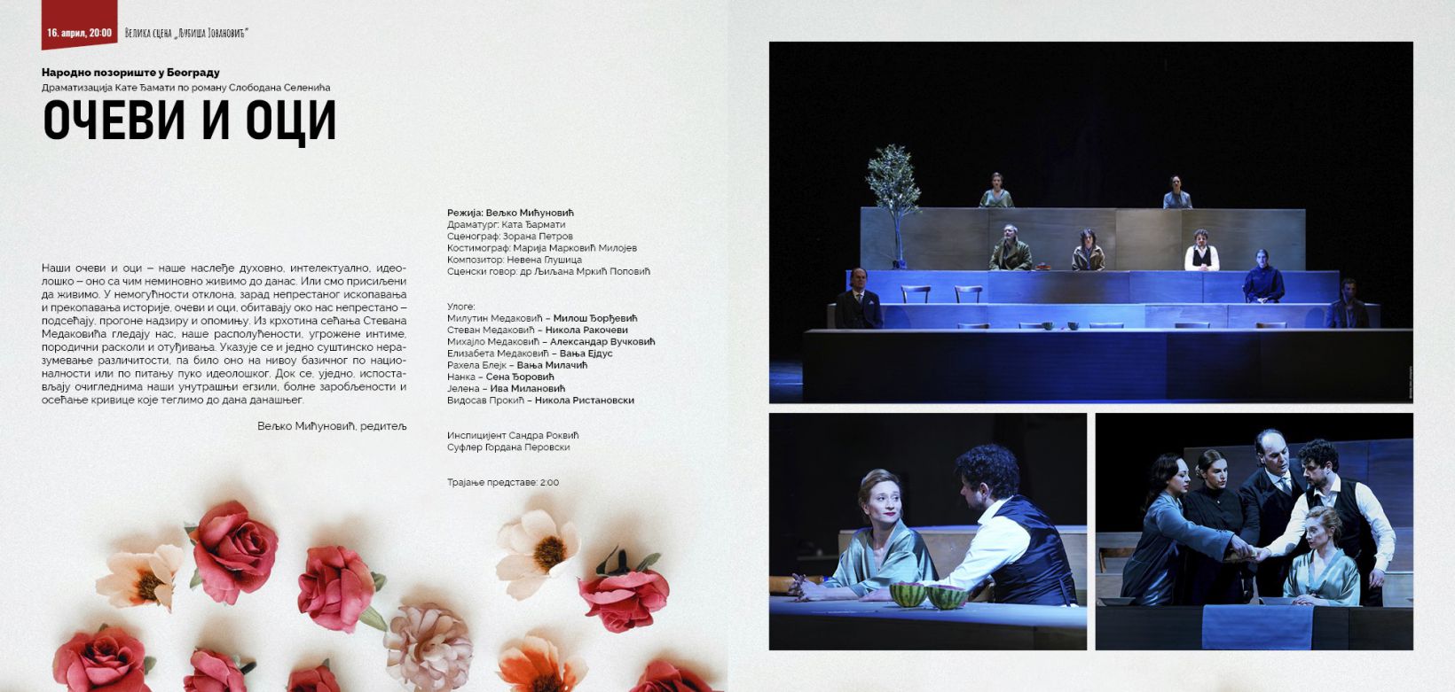Представи "Очеви и оци" Слободана Селенића, а у продукцији Народног позоришта у Београду